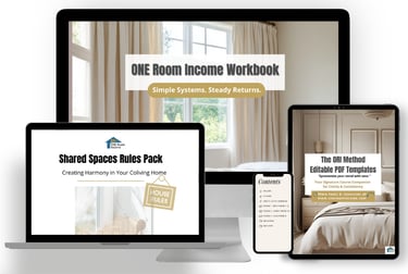 The ONE Room Income System helps you turn your spare room into a calm, well-managed coliving setup with clear systems for screening, communication, and consistency. It’s everything you need from setup to hosting your first tenant to create reliable income from home.