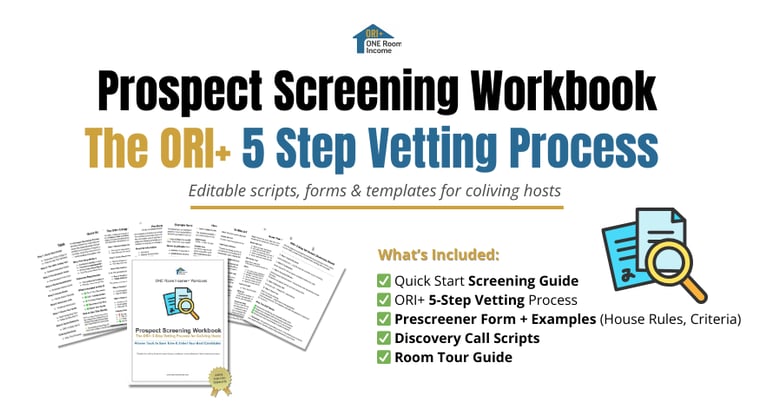 Qualify the right tenants fast. Includes editable scripts, prescreener forms, discovery call guides, and a proven 5-step coliving screening process.